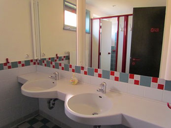 Auf den Wohnetagen befinden sich jeweils zwei Duschen und zwei Toiletten.